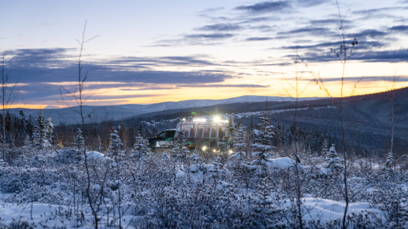 Join us for a breathtaking 2-hour Sunset Hagglunds Experience, perfect for capturing the stunning Alaskan sunset and panoramic views. You’ll ride along the ‘fire break’ in a heated snow coach, traversing a cleared path that offers prime opportunities for wildlife spotting and viewing animal tracks. This tour culminates at a hilltop location, providing 360-degree views and the chance to see Denali, North America’s highest peak, in the distance. Enjoy the serene beauty of the sunset with a complimentary drink in hand, making this a truly unforgettable adventure.